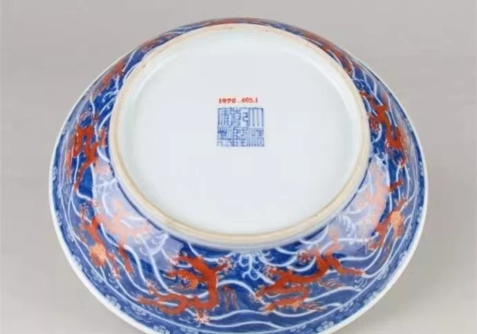 清·乾隆青花矾红云龙纹盘