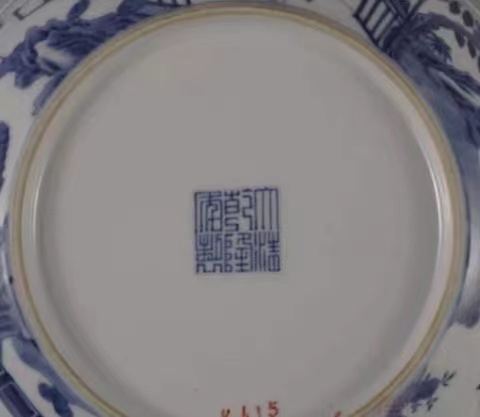 清乾隆仿明宣德青花人物图盘底