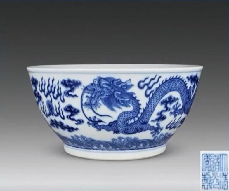 宣统皇帝,在位时间较短,传世品数量较少,该时期的胎体较薄,胎质坚致,瓷化程度高,釉面匀净,釉色为纯白色,施釉较薄,而且主要以传统造型为主,多为海水异兽纹、八卦等纹饰,绘画精致,以楷款为主。