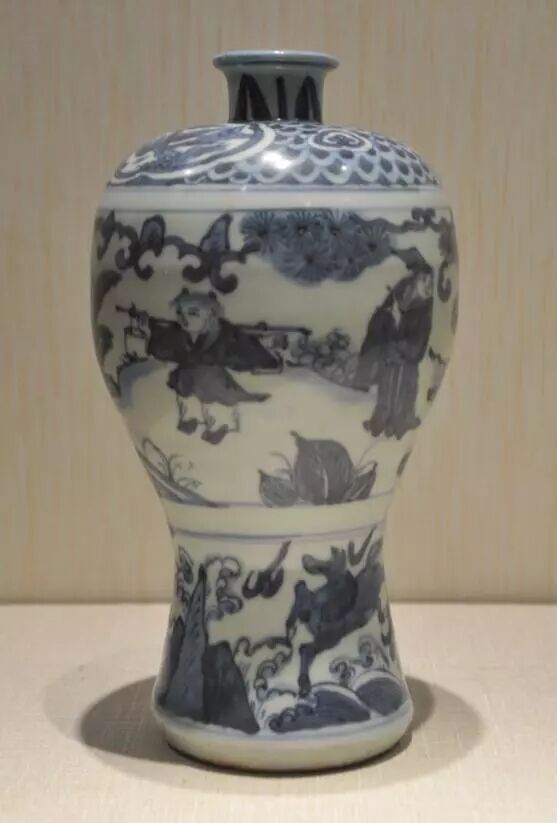元青花萧何月下追韩信图梅瓶
