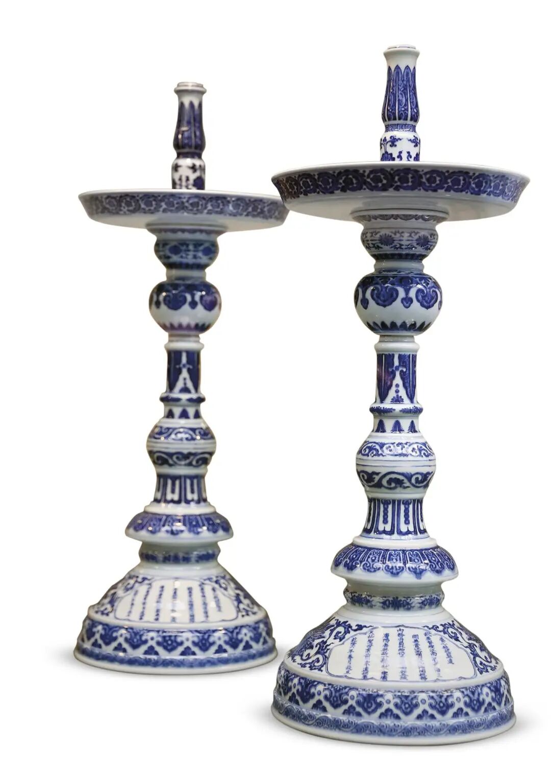 唐英制乾隆六年款青花缠枝莲纹烛台 英国维多利亚与艾伯特博物馆藏