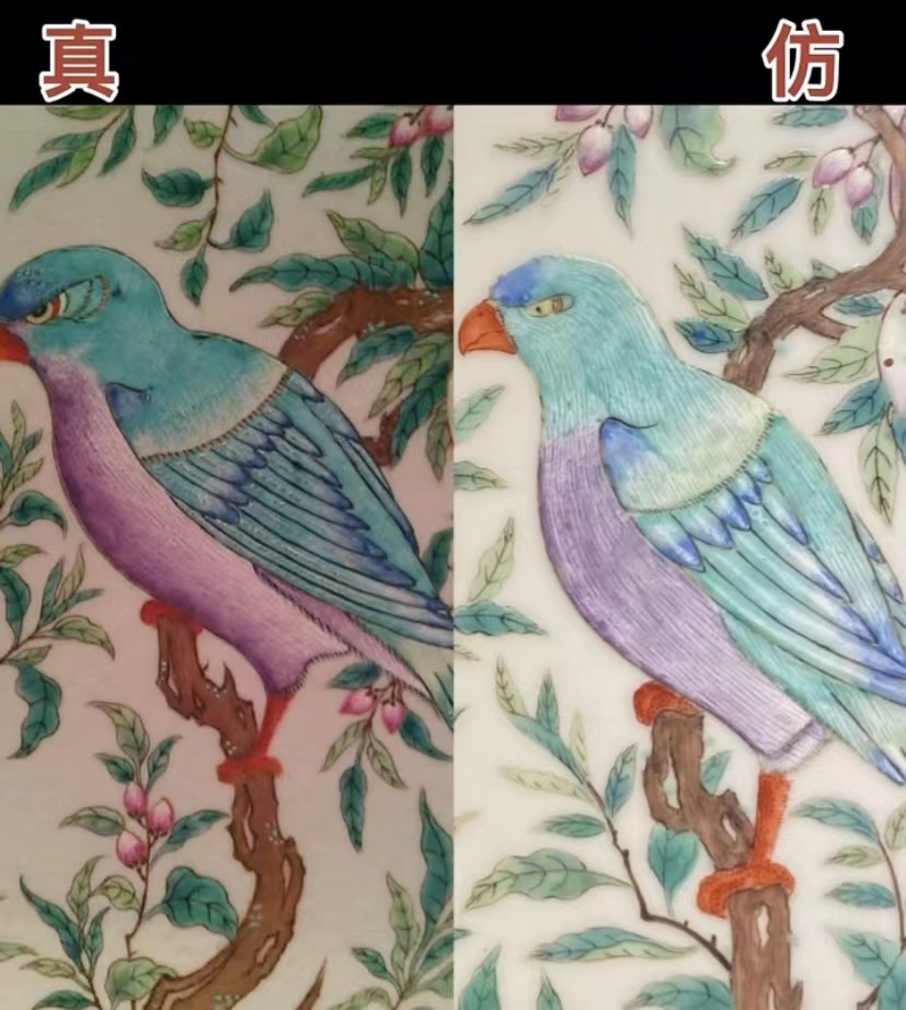 光绪粉彩鹦鹉真伪对比鉴定,学会了不“吃药”!(图文并茂,建议收藏转发)