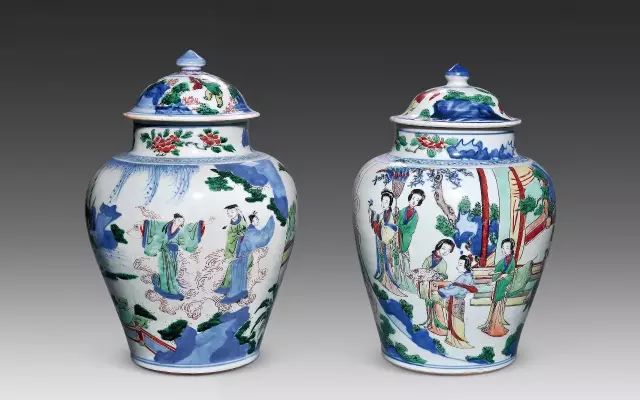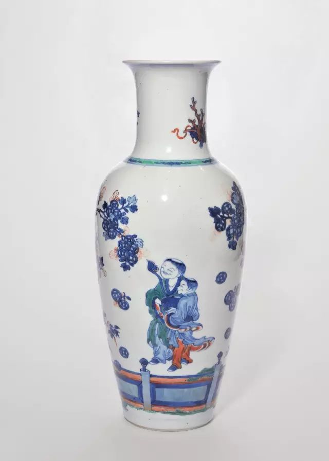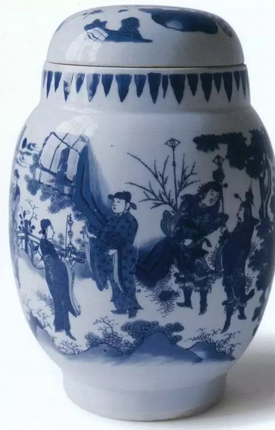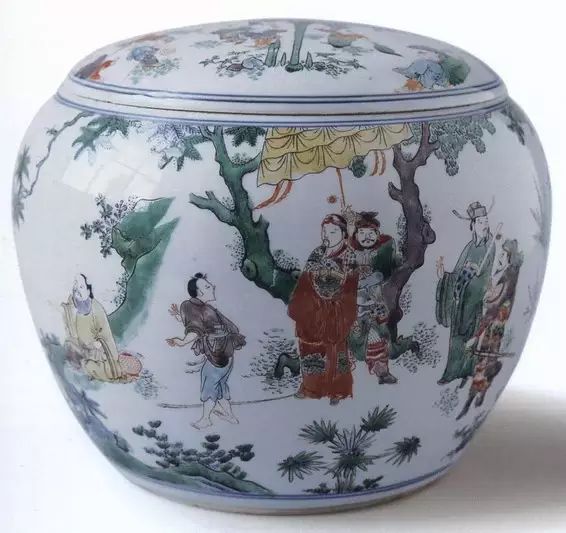 其中一个在放风筝。盖与器身多处以淡松石绿色敷彩,使此罐更显珍贵。