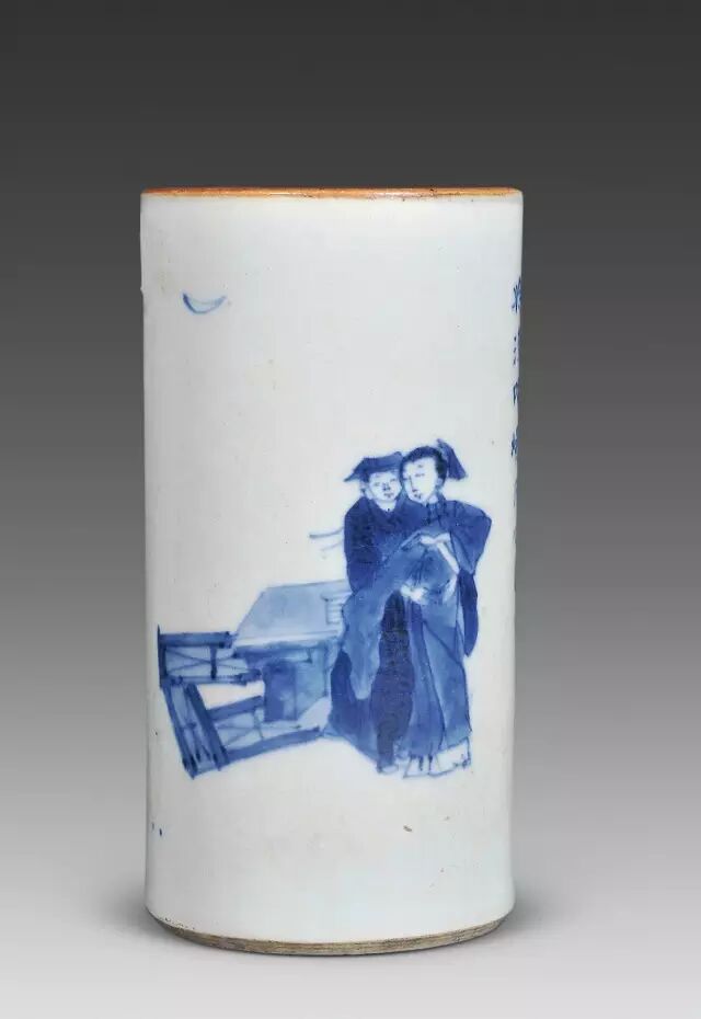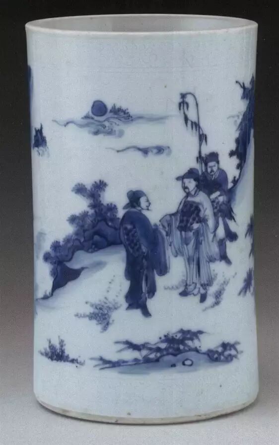 明崇祯 青花三国演义之凤仪亭人物故事图筒瓶