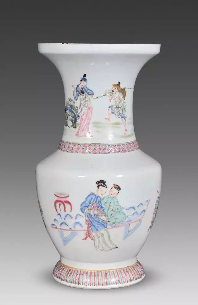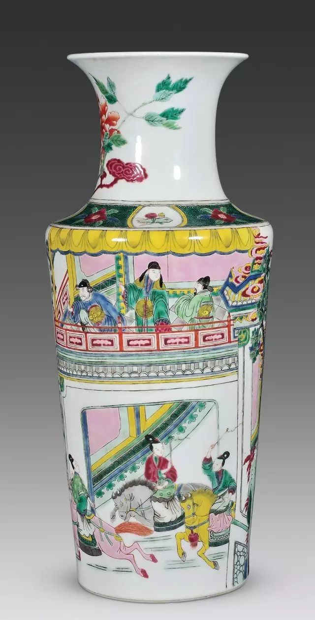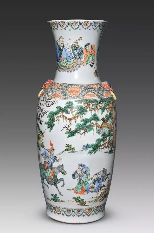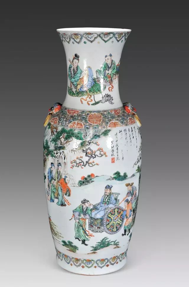 清同治十三年(1874年) 碧珊绘粉彩人物纹铺首尊