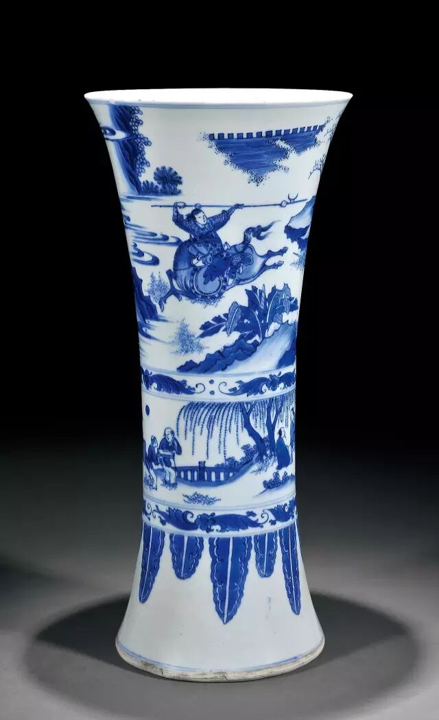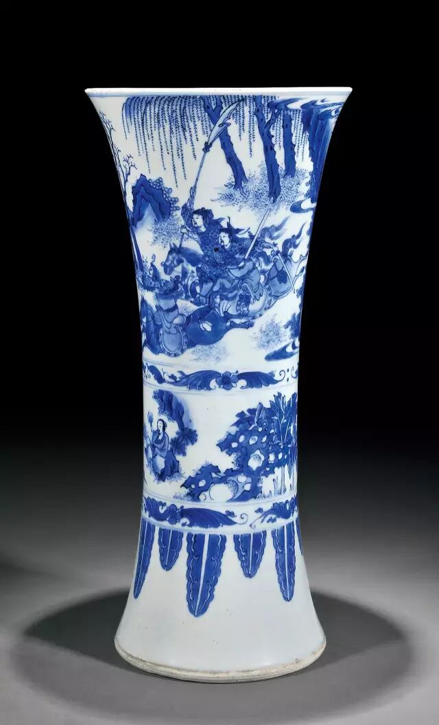 明崇祯 青花三国演义之三英战吕布人物故事图花觚