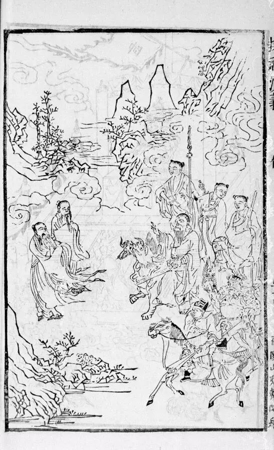 拱手者为伯夷和叔齐,帝王装束者为周武王。