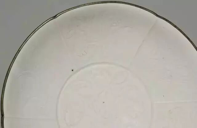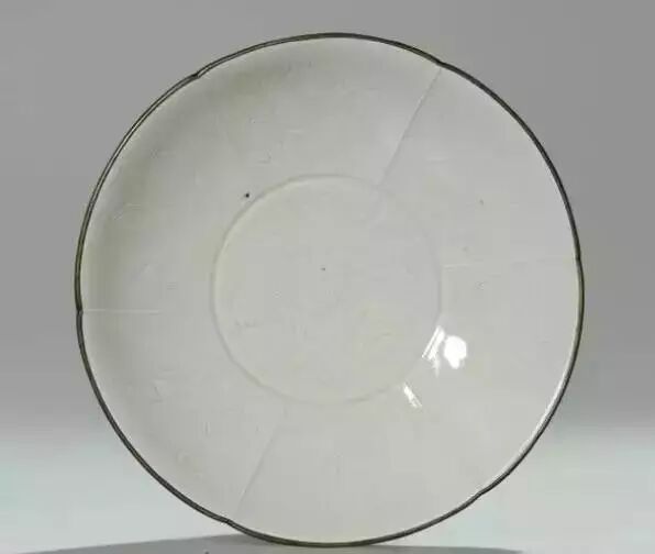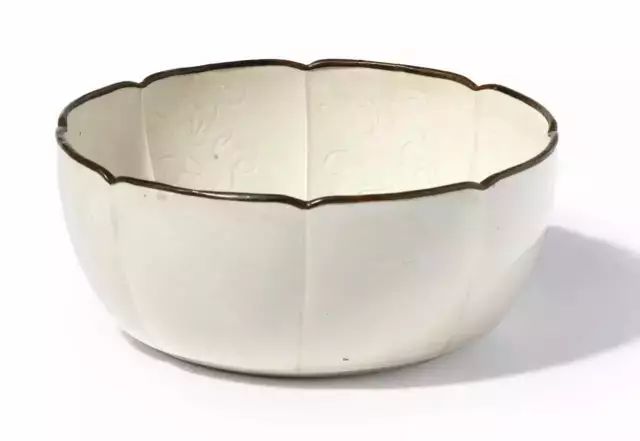 北宋 定窑白釉划莲塘浮鸭纹葵口盌