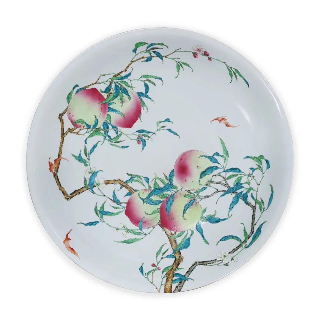 清雍正 粉彩过枝福寿双全八桃五蝠大盘