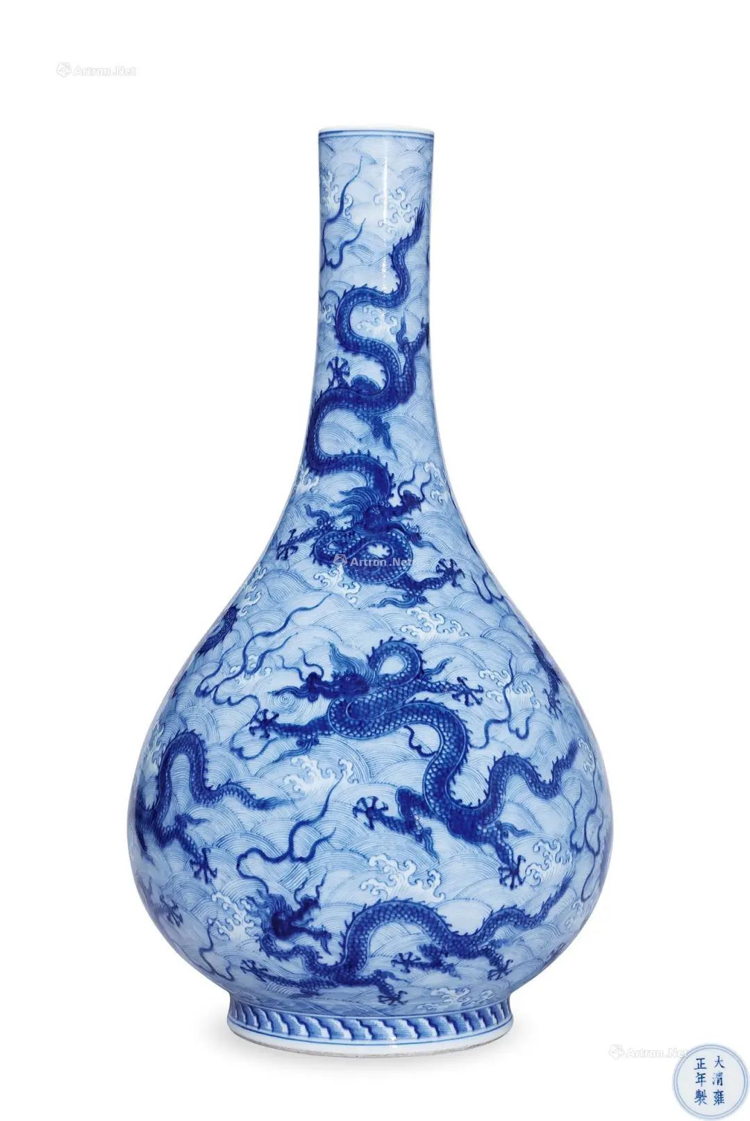 清雍正 青花淡描海浪九龙纹大胆式瓶
