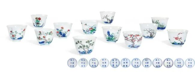 十二月令花神杯为康熙官窑之旷世奇珍,依月令之数为一套,有青花和五彩两类。每杯各自代表一个月令,一花一月,前绘画,后题诗,雅致绝伦。杯上所写的诗句皆为五言或七言唐诗,每首诗后皆钤方形篆书「赏」字印。诗句内容与杯上的绘画互相呼应,又跟月份、时节、花期相关,各种创作元素互相紧扣,足见工匠之巧思。诗书画印、瓷艺、花艺,在十二个小杯上共冶一炉,反映康熙一朝文人典雅的审美情趣。而今让我们一起更细致地逐件赏析,欣赏杯上的微观庭园,走入花神杯中的自然世界。