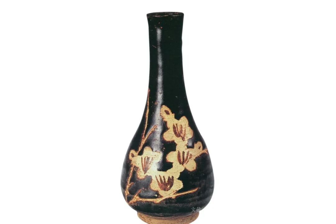 江西省博物馆藏宋黑釉剔花折枝梅纹长颈瓶,口径2.9、底径5.3、高17厘米。剔花折枝梅是宋代吉州窑最为典型的装饰工艺,展现出冷寂孤寒之美。