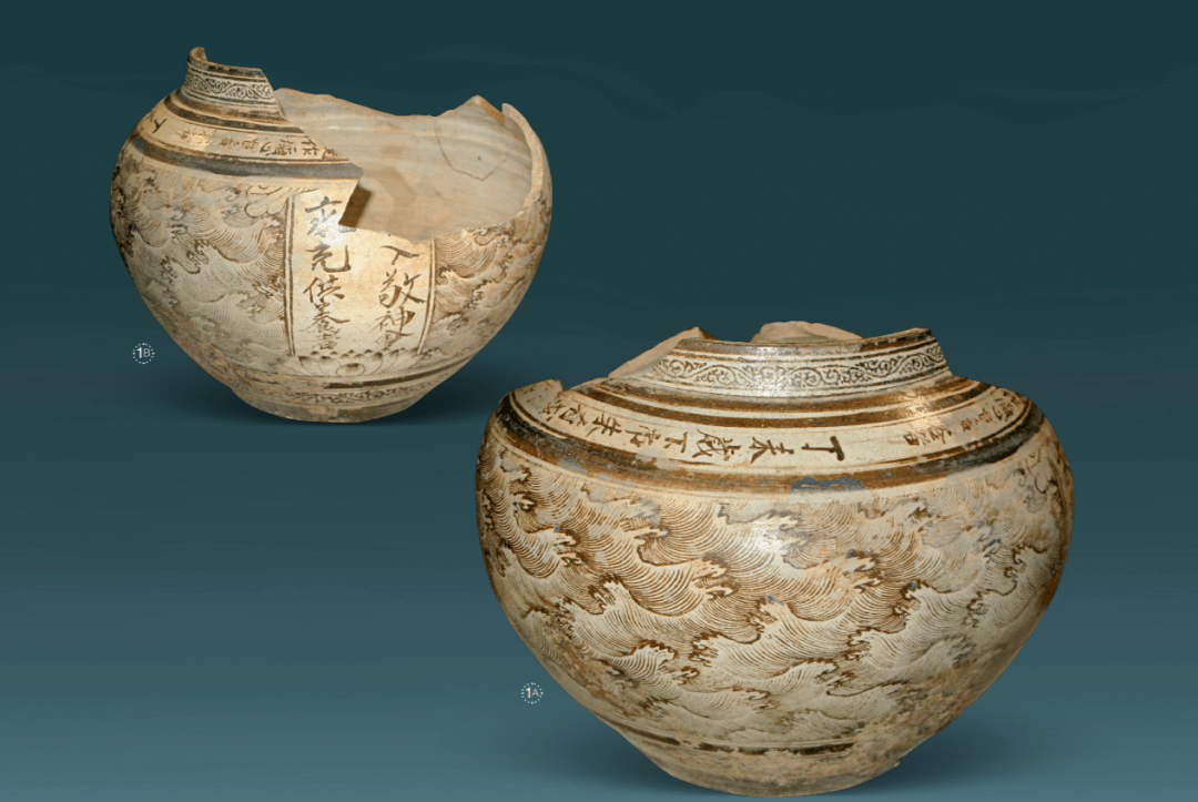 将这两件珍贵的自铭的元代吉州窑褐彩绘画瓷,与元代纪年墓葬、窖藏和韩国新安海底沉船出土的一件吉州窑卷草纹长颈瓶等资料结合考查,可窥见吉州窑元瓷的一些真实面目。这两件珍瓷也反映出波涛纹是元吉州窑非常流行的纹饰。