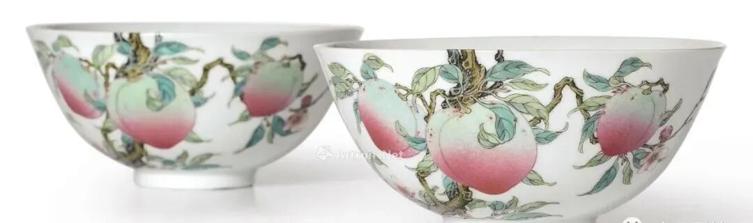 清雍正 粉彩过枝福寿双全盌 (一对)