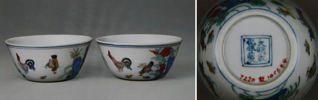 图二十七:清代康熙郎窑仿成化斗彩鸡缸杯(一对)