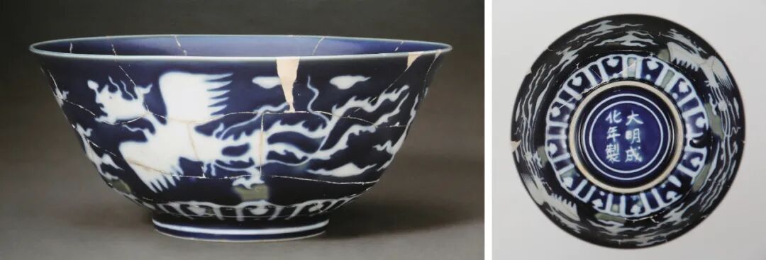 图二十三:明代成化蓝釉白花云凤纹碗,景德镇市珠山明代御窑遗址出土景德镇市陶瓷考古研究所藏