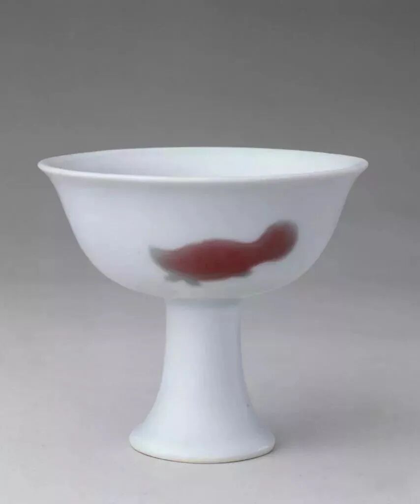 明宣德釉里红三鱼纹高足碗