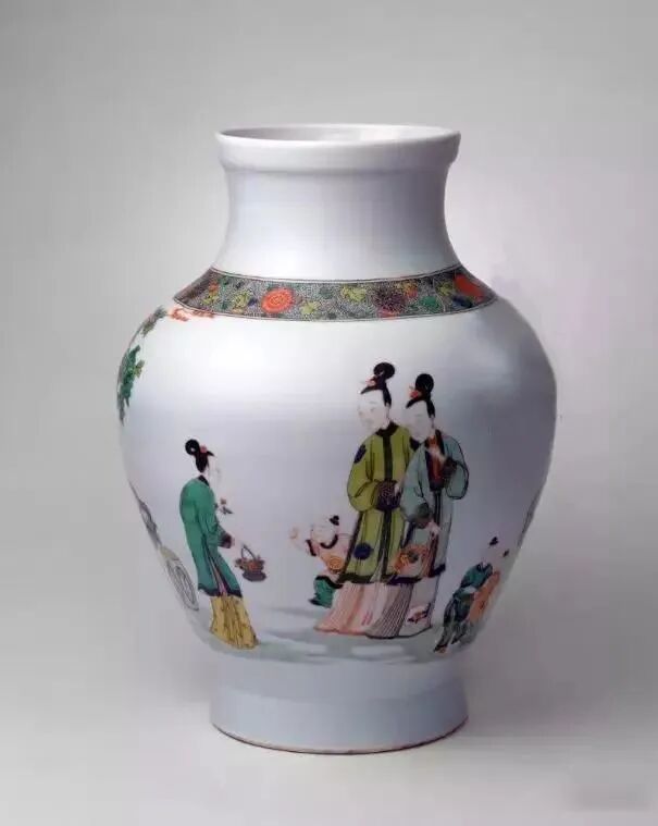 清雍正五彩仕女纹罐