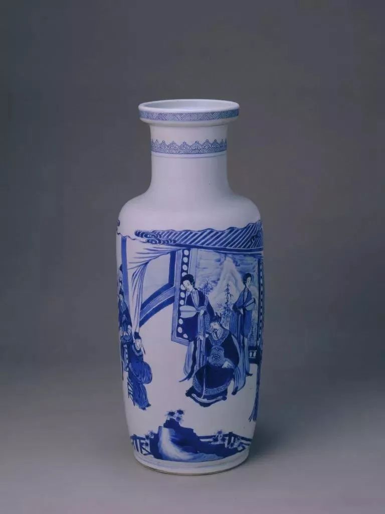 清康熙青花“红拂传”图棒槌瓶