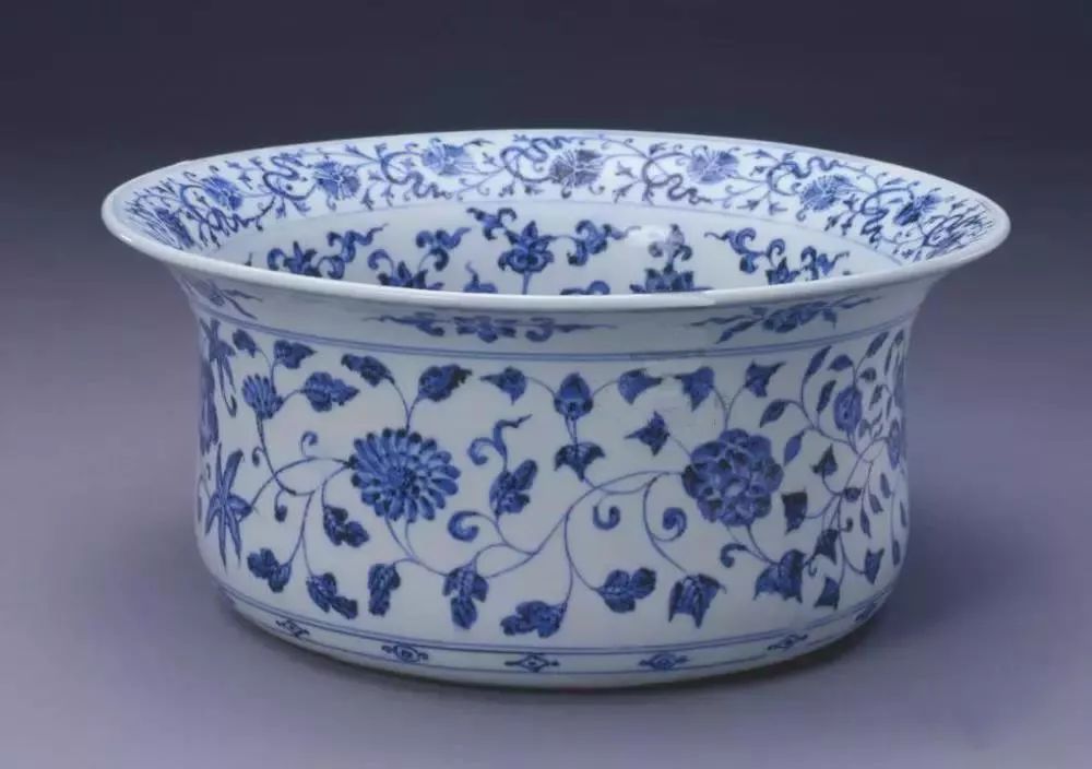 明永乐青花缠枝花纹折沿盆