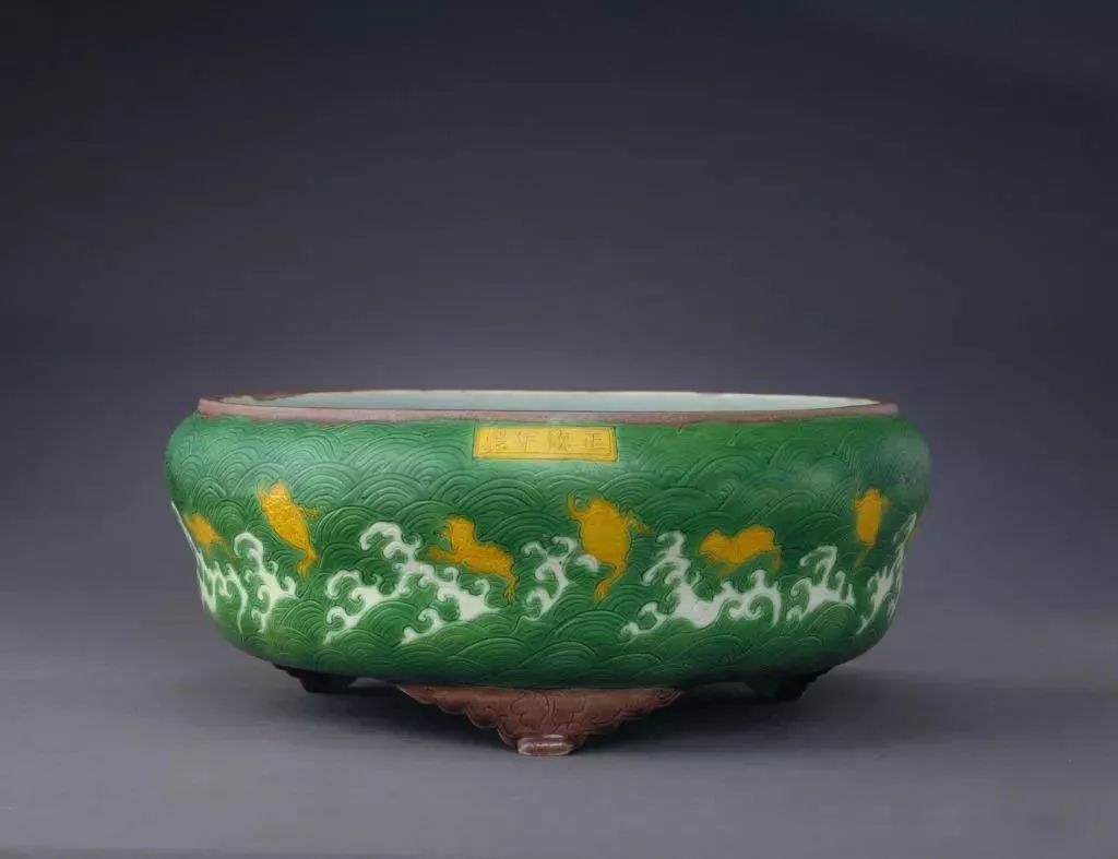明正德素三彩海蟾纹三足洗
