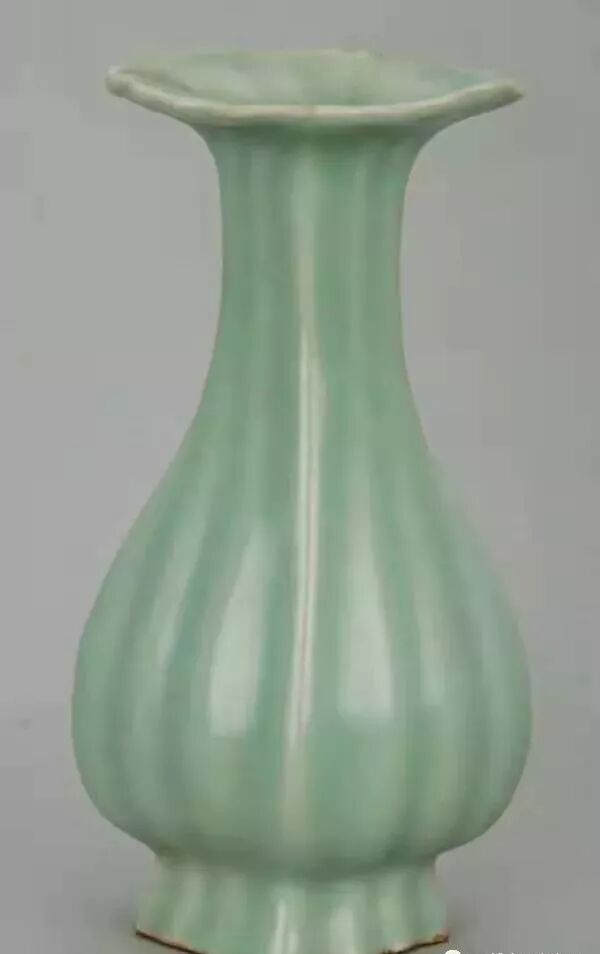 南宋龙泉窑青釉菱口瓜棱瓷瓶