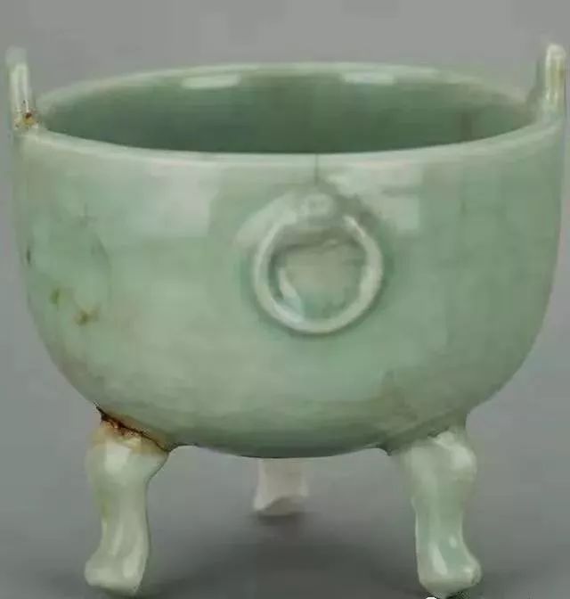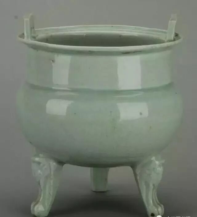 南宋龙泉窑青釉兽耳衔环直口深弧腹鼎式瓷炉