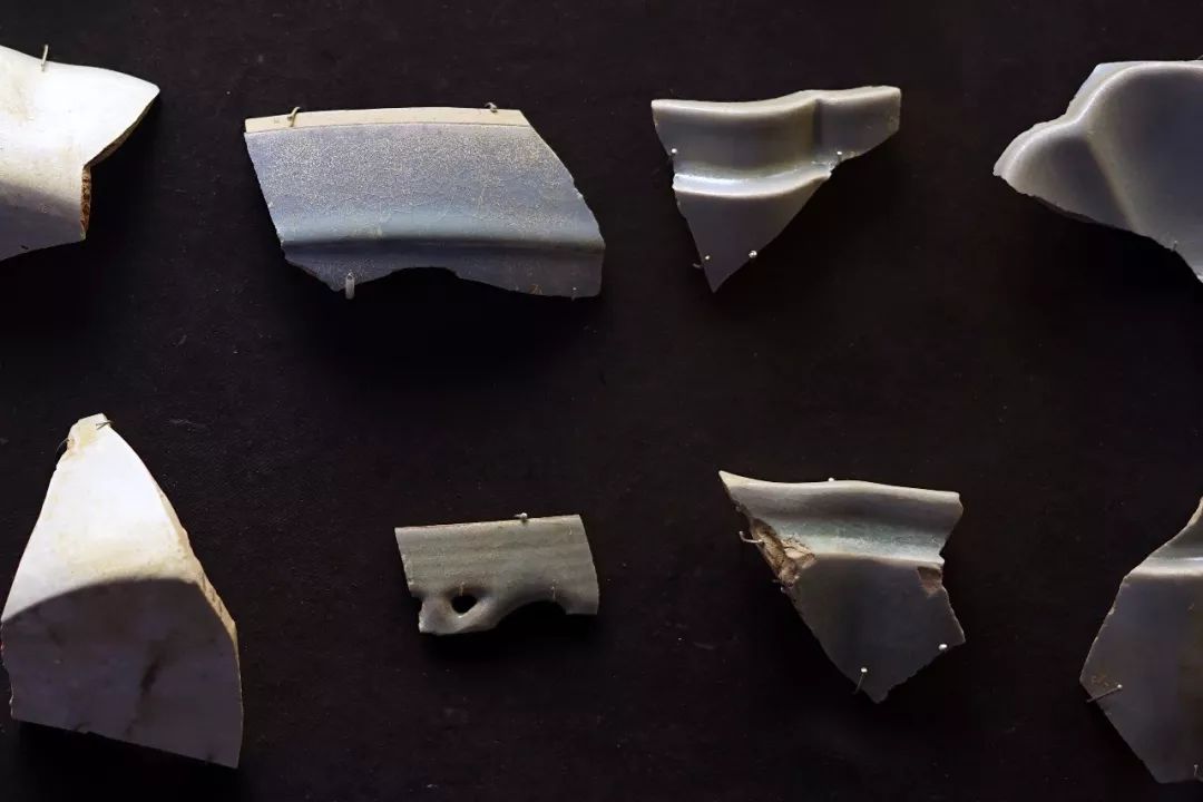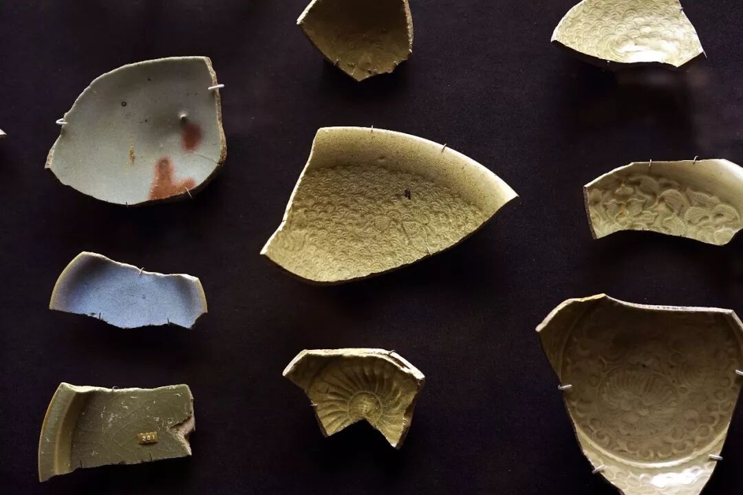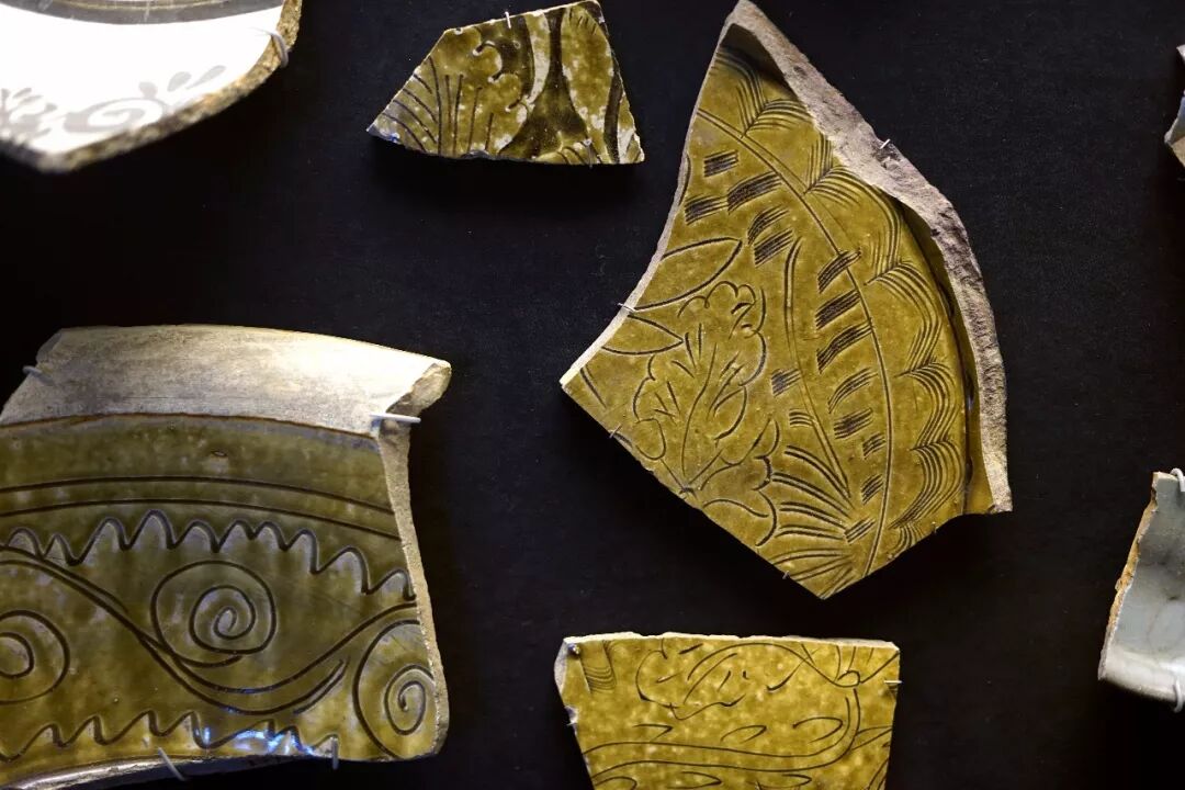 ▶ 上左及下左这三片标本,如不看胎足,与耀州窑无二。如果不是窑址采集,下右两块珍珠地标本单独拿出来,窑口更是神仙难断。