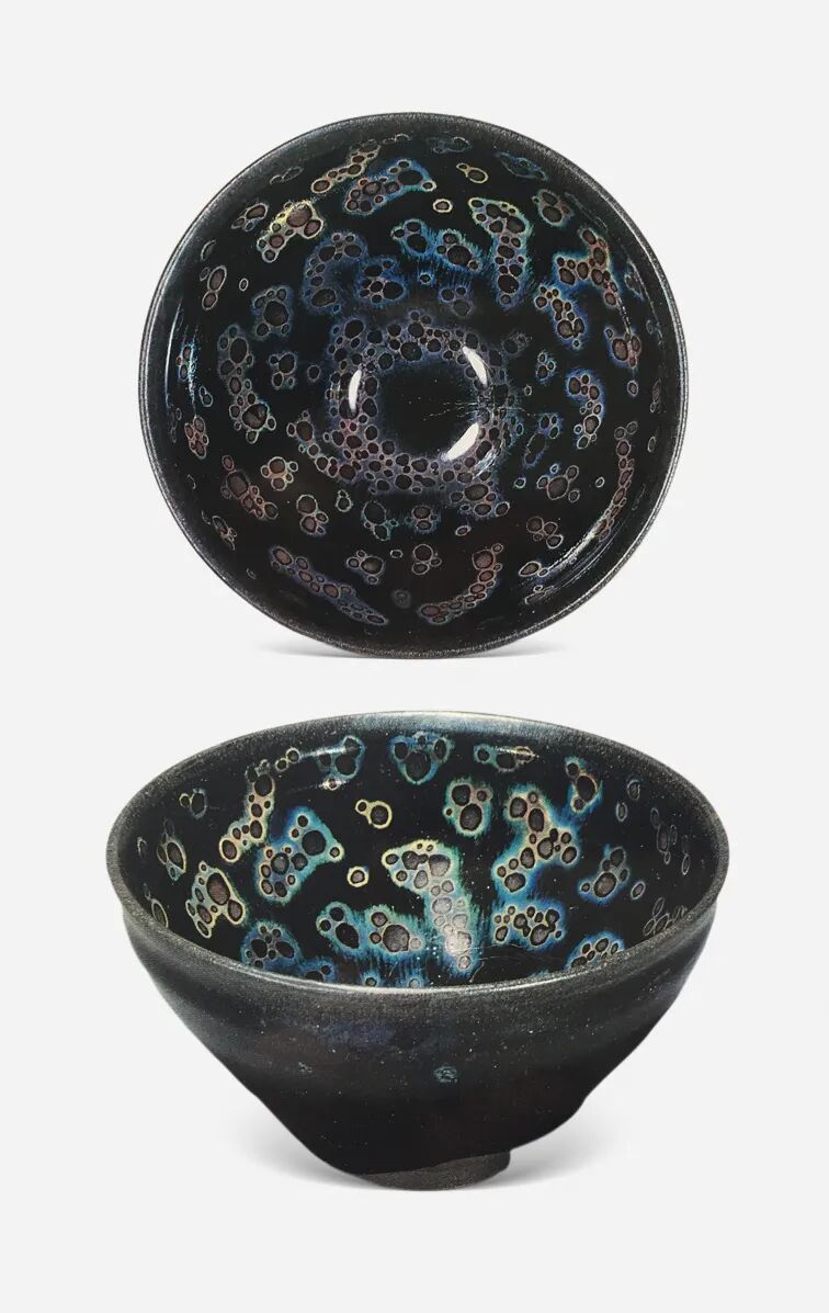 宋代自皇室、士大夫到市民阶层,饮茶、斗茶之风盛行,成为当时的时尚。吉州窑和建窑所烧造的黑釉茶盏,在当时最负盛名,此二窑工匠大胆运用新工艺,利用铁釉的结晶原理和科学配方烧成了兔毫釉、油滴釉、玳瑁釉、鹧鸪斑釉以及曜变天目釉等多种黑釉窑变茶盏,釉质温润如玉。