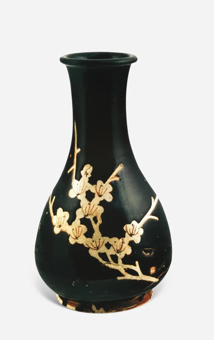 宋 吉州窑剔釉填绘黑釉梅纹瓶