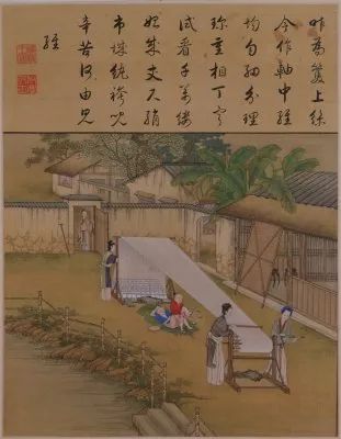 因此乾隆将其命名为“耕织图”,意寓着一幅洋溢男耕女织生活情趣的幽美图画。