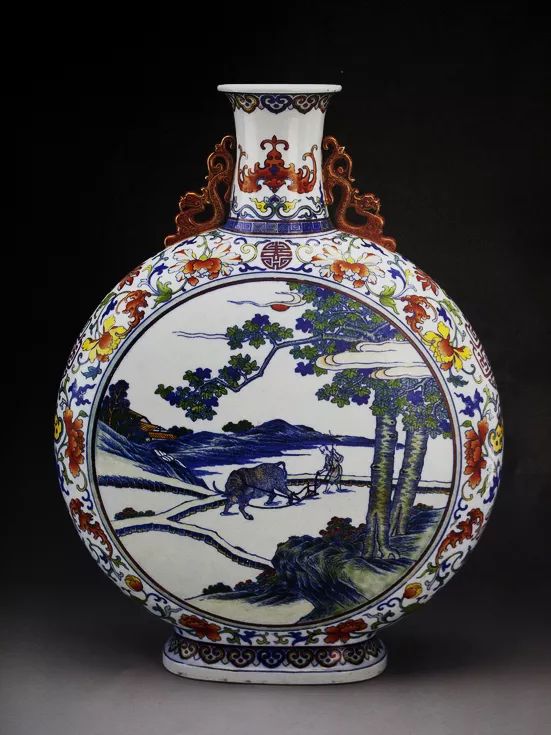 乾隆款斗彩农耕图抱月瓶 局部 天津博物馆藏