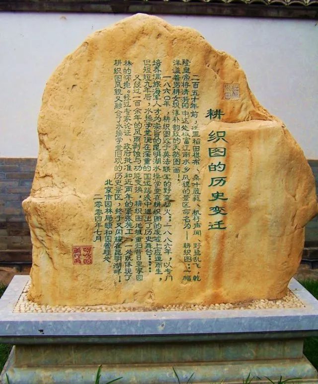题名“耕织图”,并在立石阴面刻御诗《自玉河放舟至玉泉山》一首: