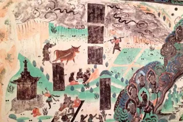 莫高窟第23窟的北壁上就有一幅清晰的绘制于唐代的《耕作图》,
