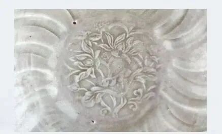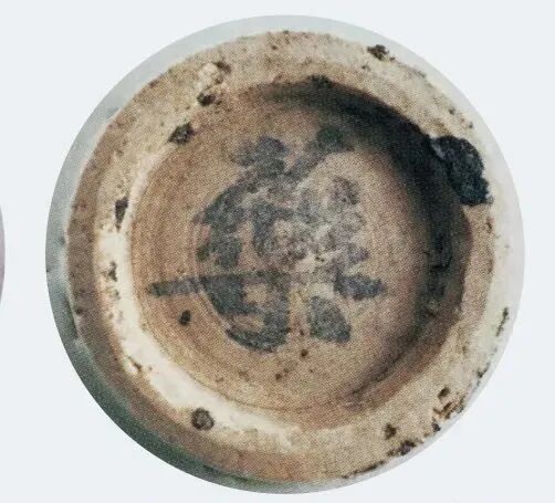 比较特殊的是 2003 年在内蒙古察哈尔右翼前旗巴音塔拉镇土城子村元代集宁路古城遗址出土的一件元代“枢府”铭卵白釉印花盘,此盘的印花纹饰中有“枢府”铭文,盘底墨书“药”字款(下图)经分析此盘有可能是经元代枢密院挑选后才流入民间的。