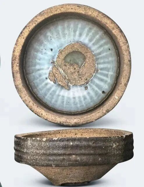 图三 元 钧窑天蓝釉菊瓣碗(带匣钵)