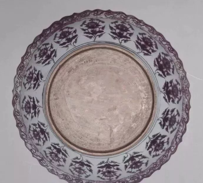 她们家族显然是不知道这个盘子的重要性,偶然性的被拍卖行发现,结果拍出了一个历史的高价。这个盘子为什么这么贵,原因首先是元代的瓷器尺寸比较大,影响到洪武时期瓷器的尺寸也比较大,这个尺寸就决定了它的一个价格。故宫也收藏有类似大小的釉里红瓷盘。