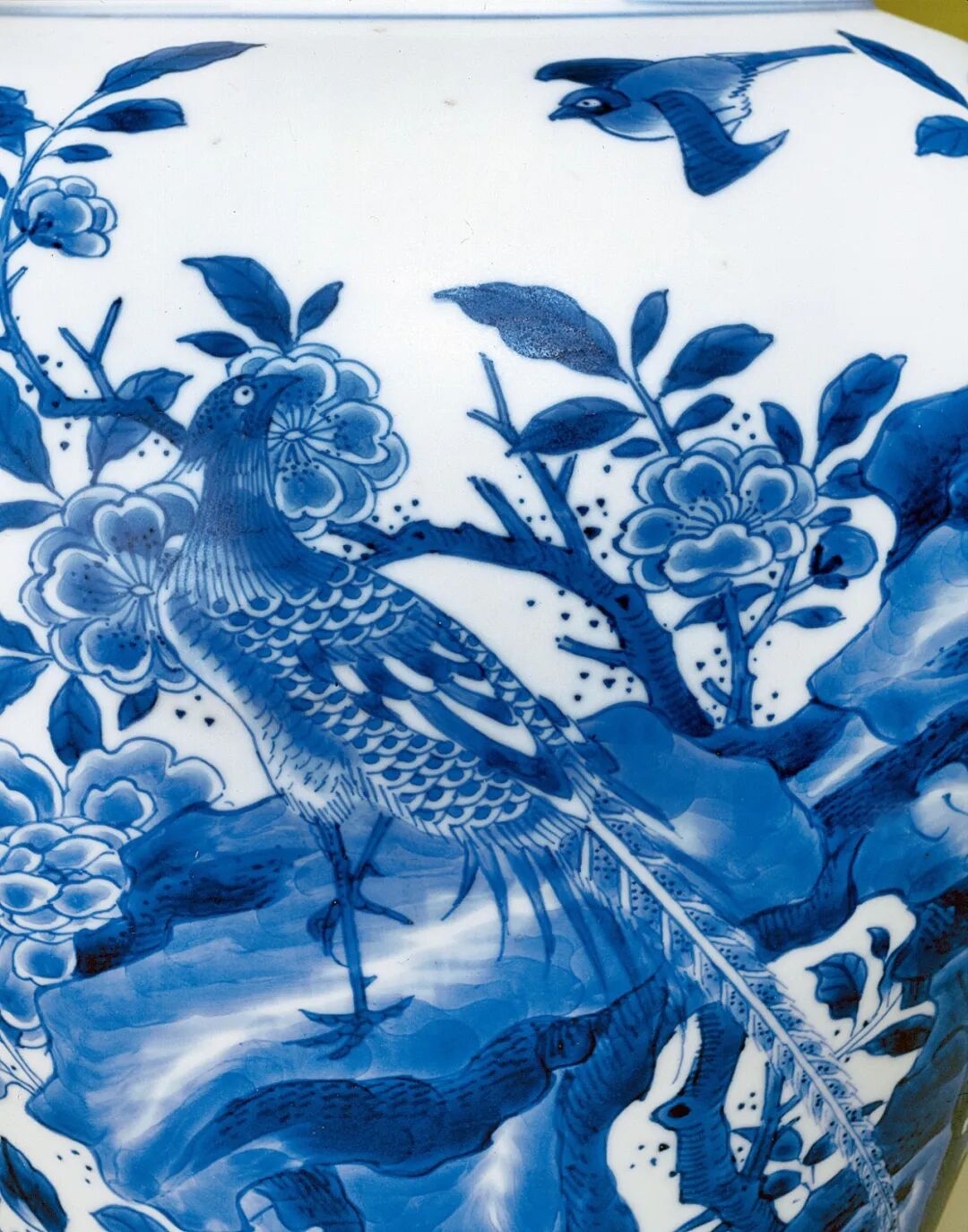 对于初学者来说,如果单从分辨其青花色泽是否是真正的「翠毛蓝」(青花瓷器中的一种发色,只出现在康熙青花瓷器上)来区分康熙青花瓷器与后世仿康熙青花瓷器似乎有些难度,而实际上大部分康熙青花瓷器上的「翠毛蓝」色泽会有或深一些或浅一些的情况,并不是千篇一律的。光绪朝仿康熙青花瓷器很多,其青花色泽深暗,没有层次。