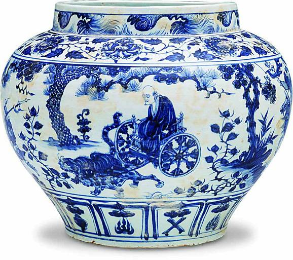 “鬼谷下山”元青花大罐2005年7月英国佳士得公司拍卖会上以2.3亿元人民币的高价拍卖。
