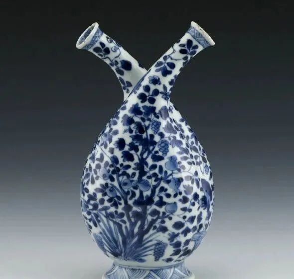 清康熙 景德镇窑青花果树纹双管瓶 上海博物馆藏