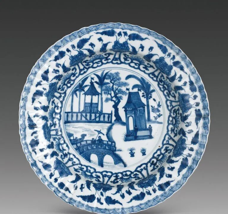 清康熙 青花风景图菊瓣盘 故宫博物院馆藏