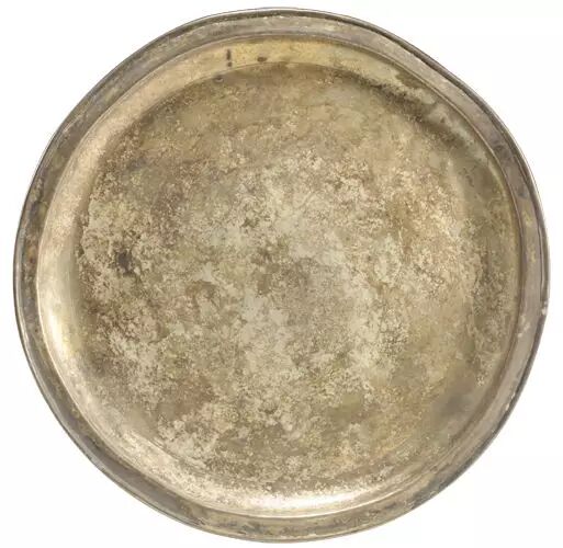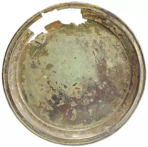 阿拉伯文银盘 高1.6厘米,口径16.5厘米,底径13厘米(图8)。板沿,浅腹,平底。底部刻有阿拉伯文的回历纪年铭文,经译为回历714年1月,即元仁宗延祐元年(1314年)。