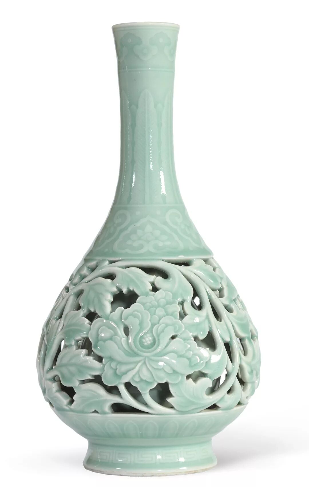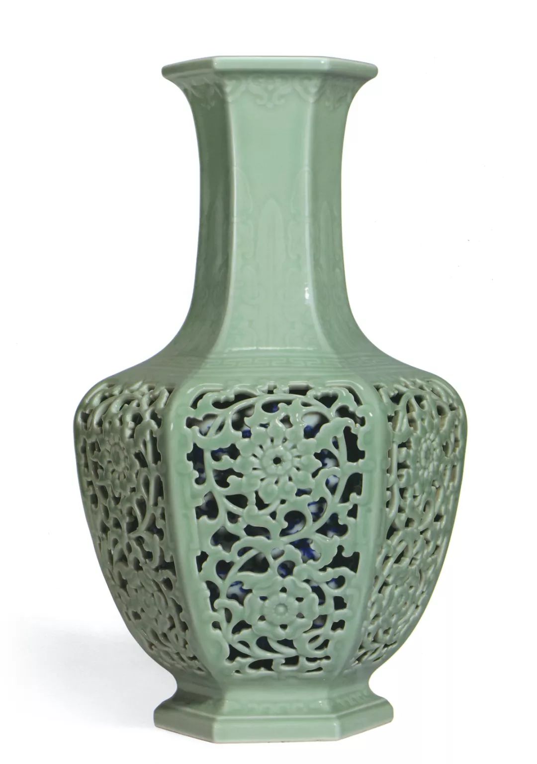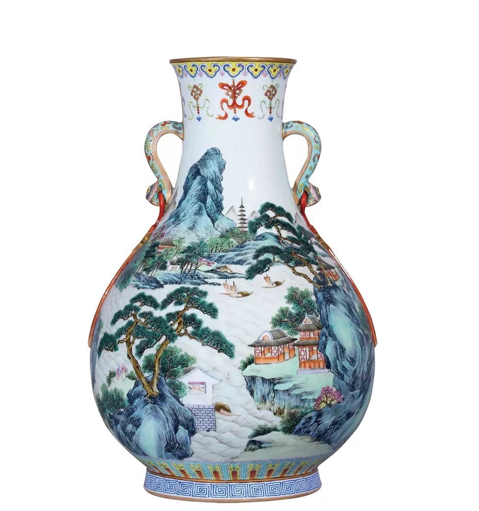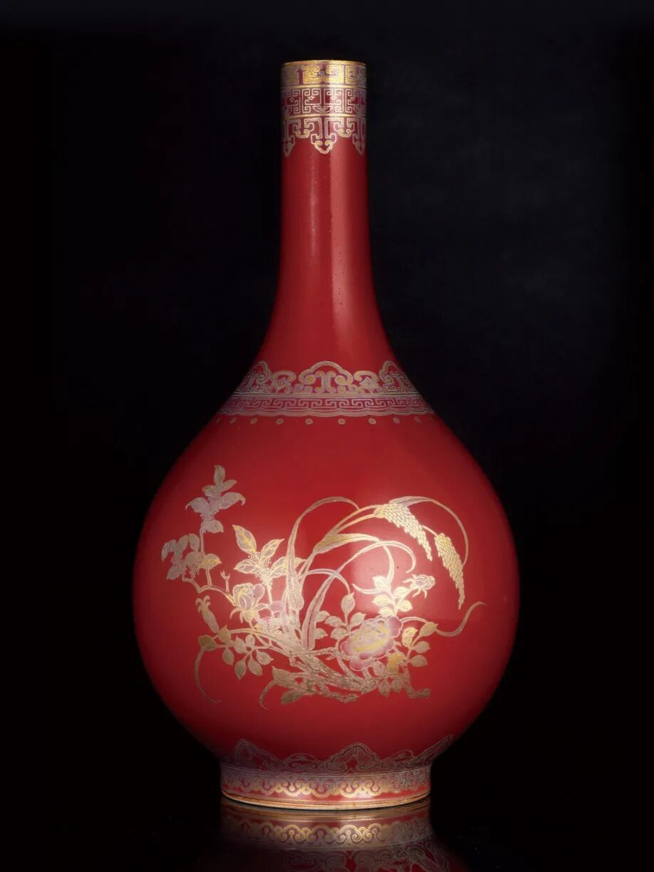 2021年在北京保利以2.65亿人民币成交的清乾隆御制洋彩胭脂红地轧道雕瓷镂空“有凤来仪百鸟朝凤”图双螭耳大转心瓶位居中国瓷器成交价之首,更刷新了全球最贵中国瓷器拍卖成交纪录!