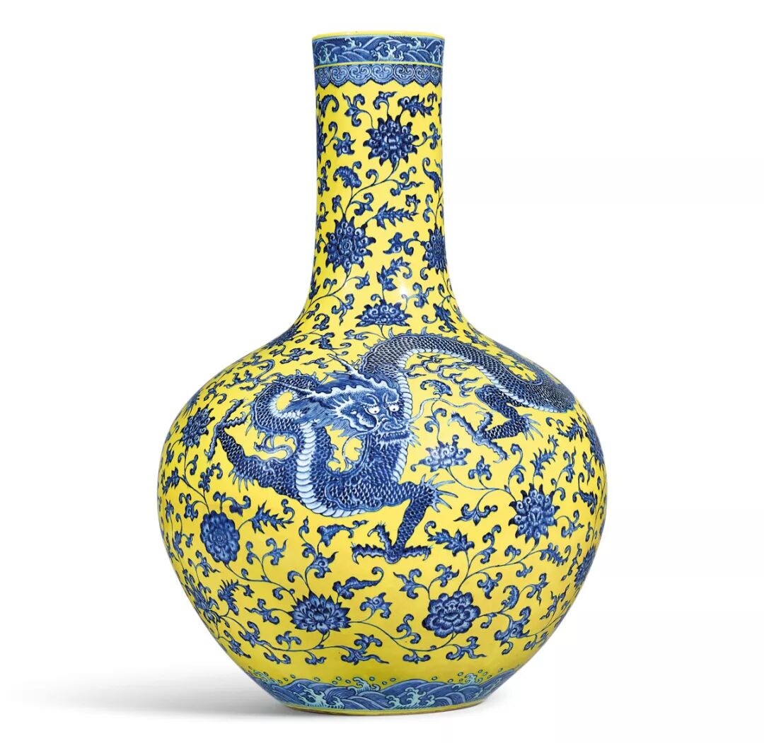 2021年12月5日北京保利【禹贡I-盛清御瓷新风尚】专场乾隆御制洋彩“有凤来仪百鸟朝凤”大转心瓶以2.65亿人民币成交荣登史上最贵瓷器。