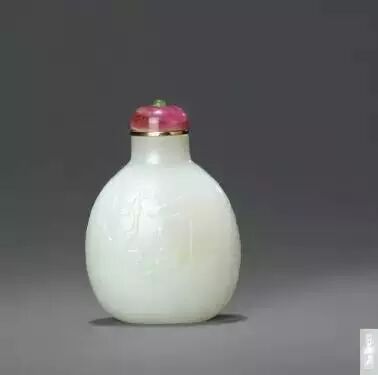 清乾隆 白玉雕“子冈”款西厢故事图鼻烟壶