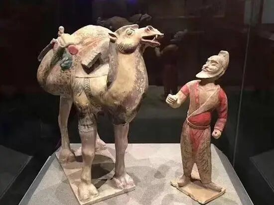 “胡人”是古代汉人对西北少数民族的称呼,并扩而大之,涵盖中亚、西亚等少数民族与国家。胡俑是一种较为特殊的陪葬俑,汉魏晋南北朝墓葬中偶有发现,目前已知的绝大部分胡俑出自隋唐墓葬,尤其是盛唐墓;宋及以后几乎不再陪葬胡俑。这与沙漠丝绸之路的兴起、繁荣到衰退密切相关。丝绸之路由长安通向中亚、西亚以至于阿拉伯的丝绸之路是中国对外交通、贸易的重要纽带,唐代时这条商路更加繁荣,商队络绎不绝。骆驼是商客的坐骑,也是托运物资的工具,被称为“沙漠之舟”。墓中以胡人牵驼俑作为随葬品,是对唐代现实生活的生动反映。