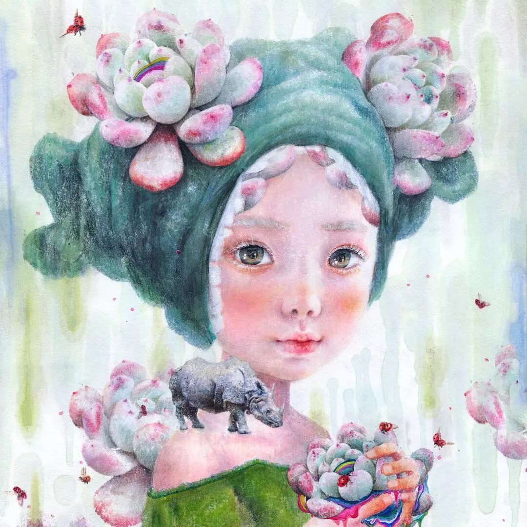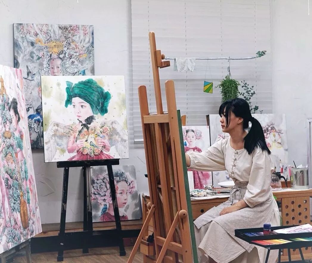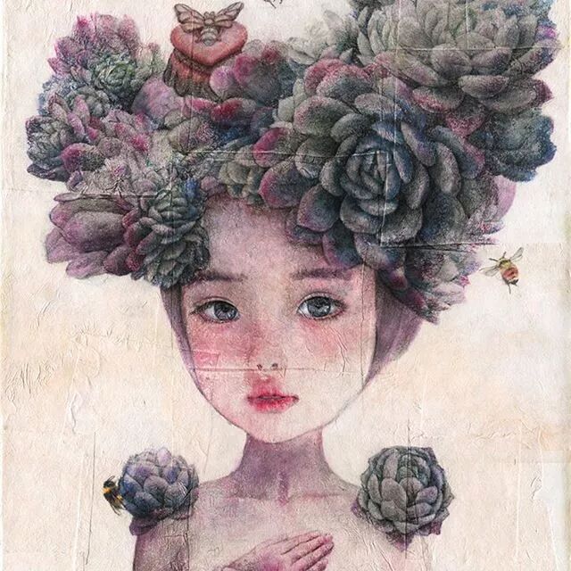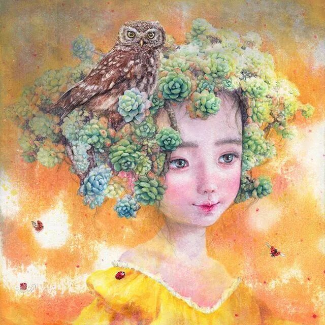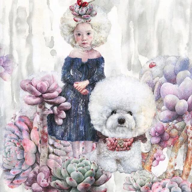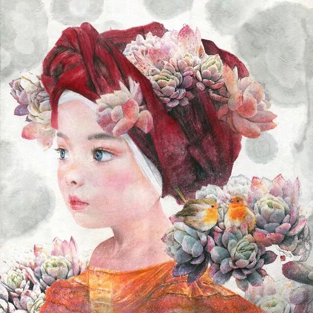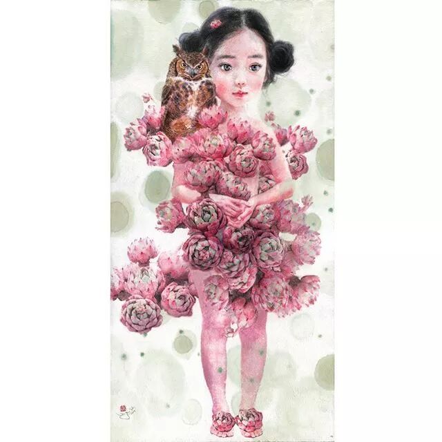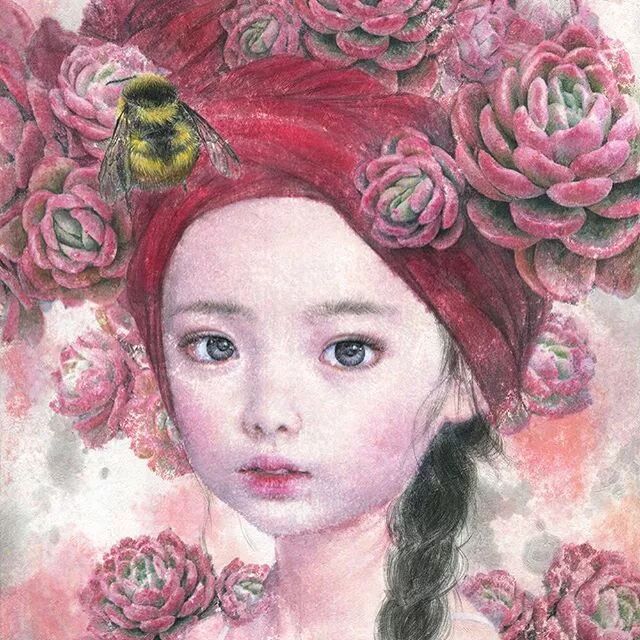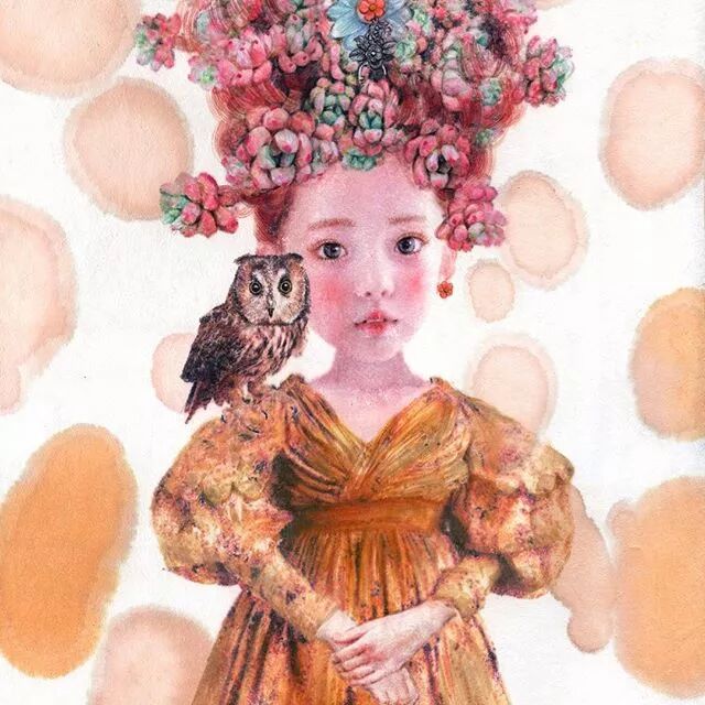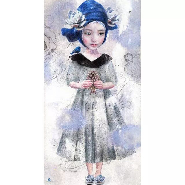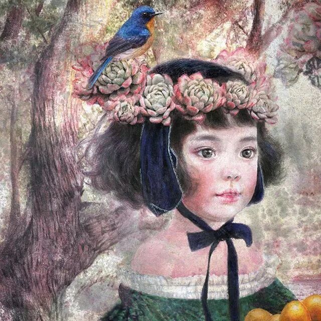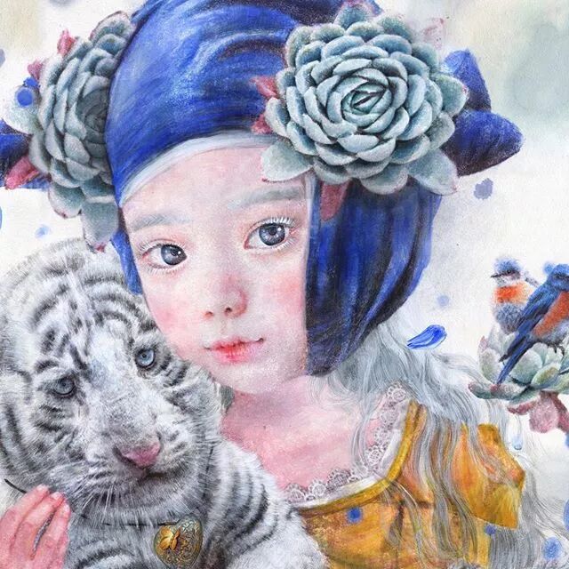她画中的题材多为女孩子和一些动植物,