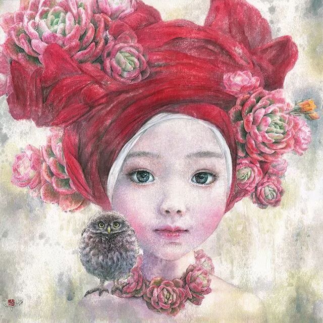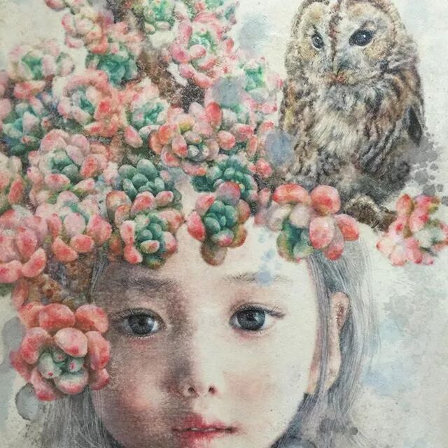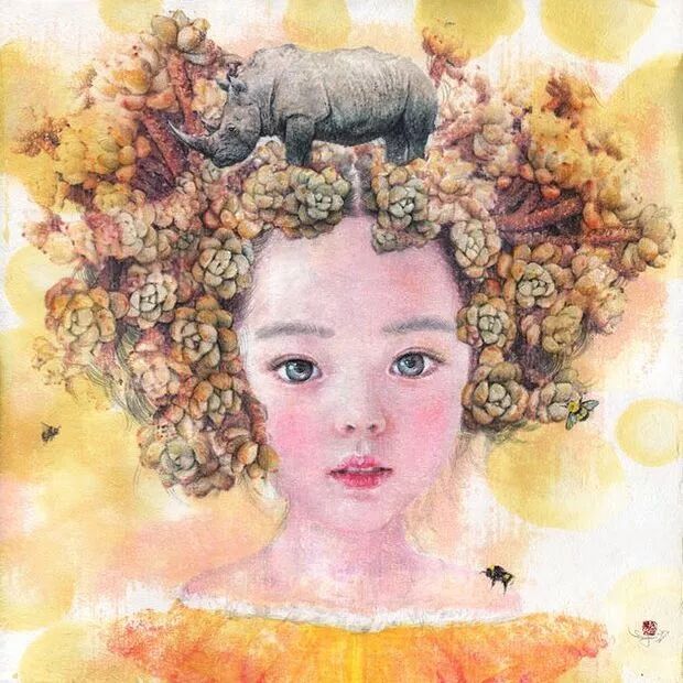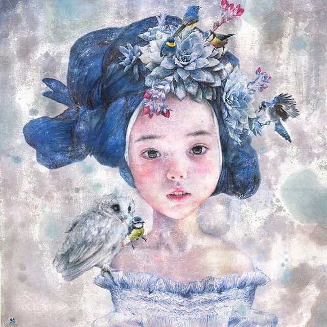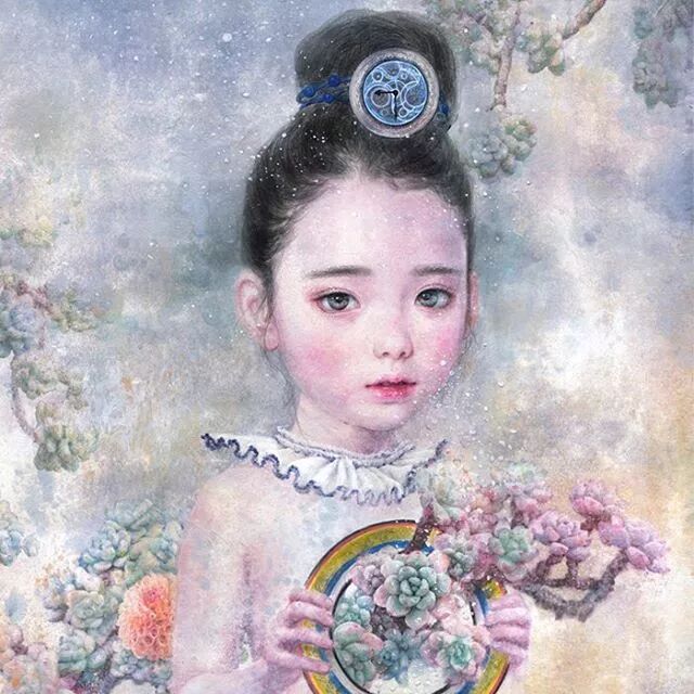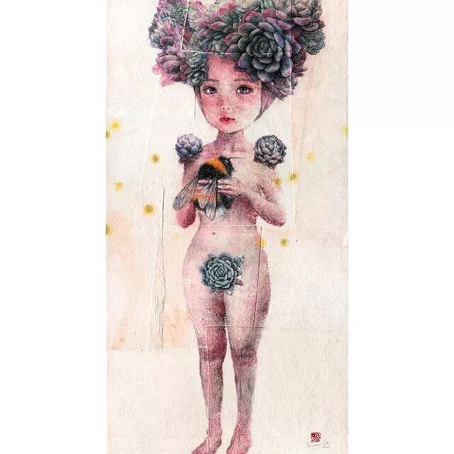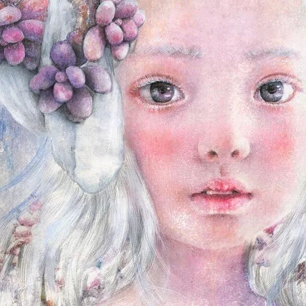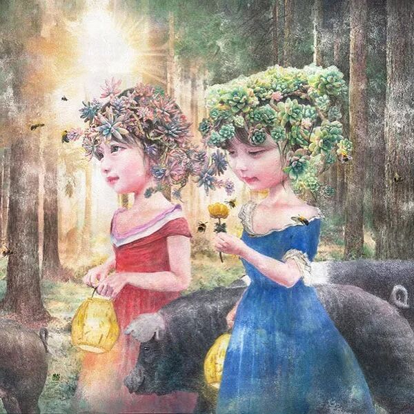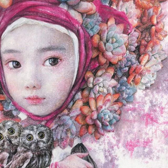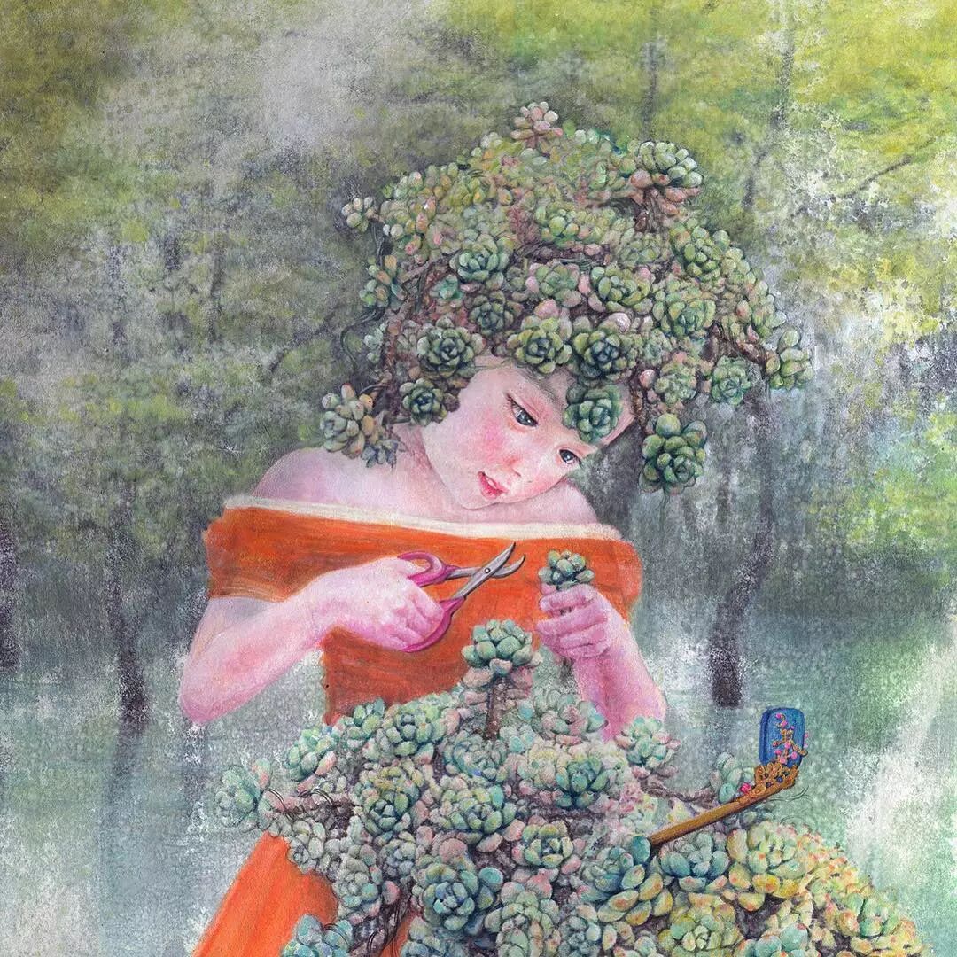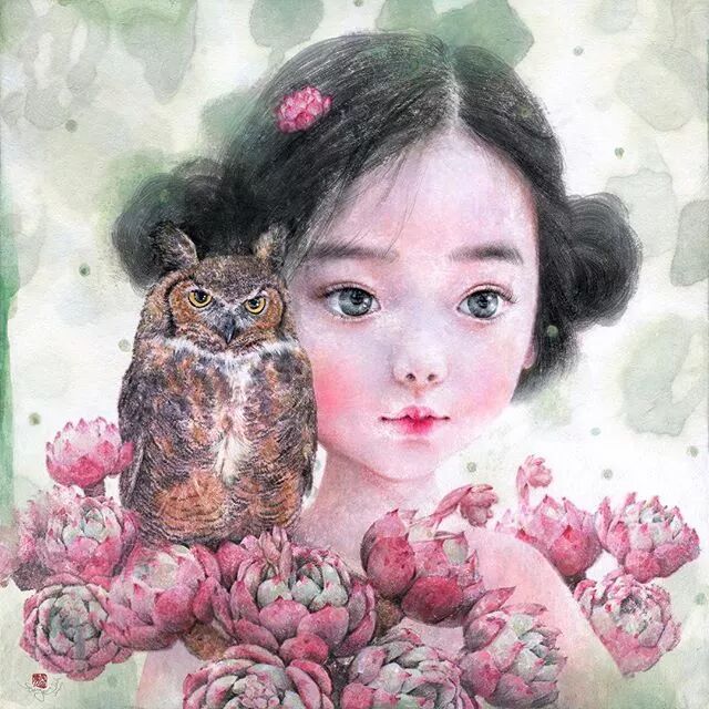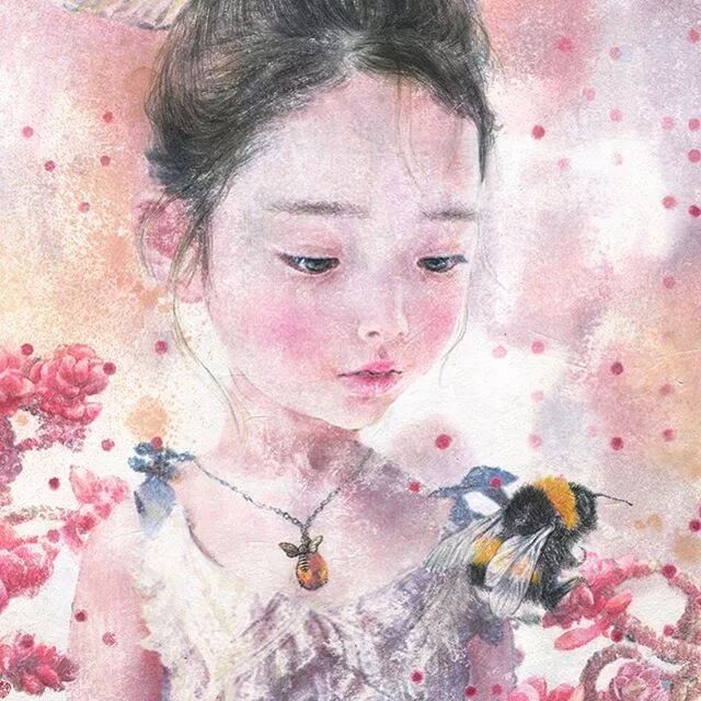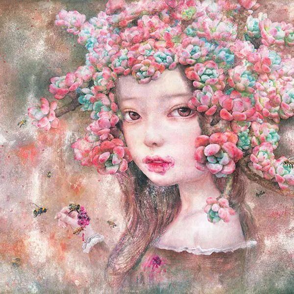 她画中的题材多为女孩子和一些动植物,