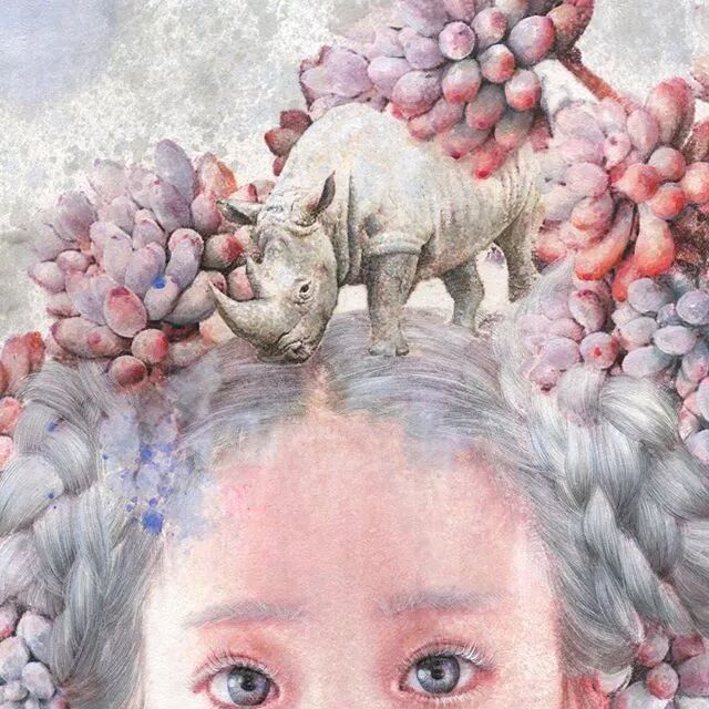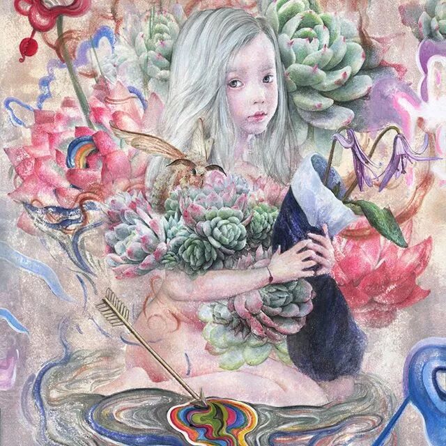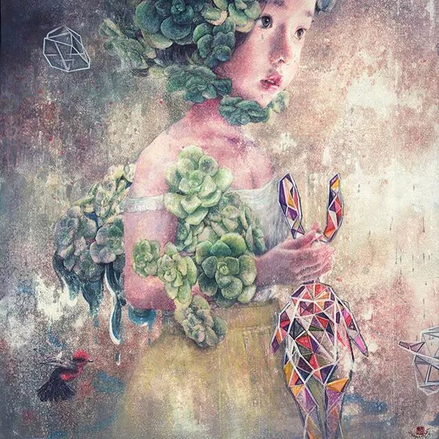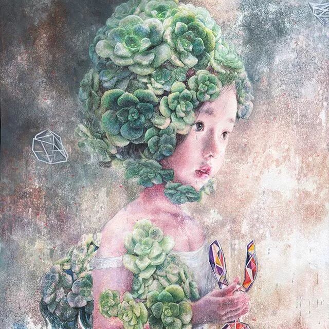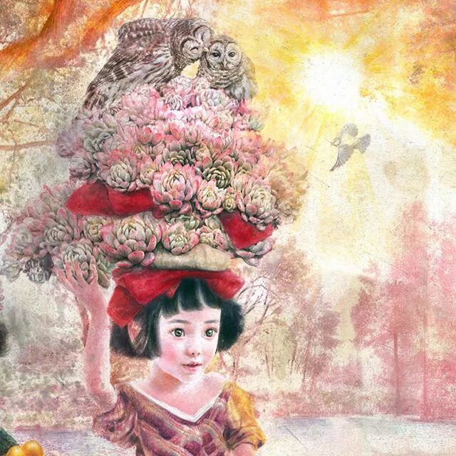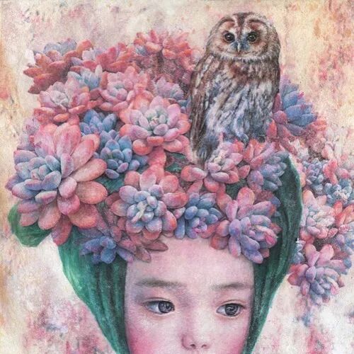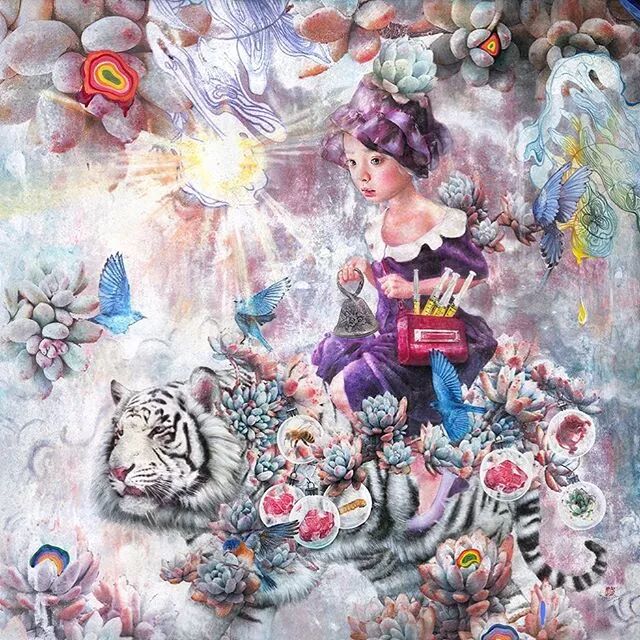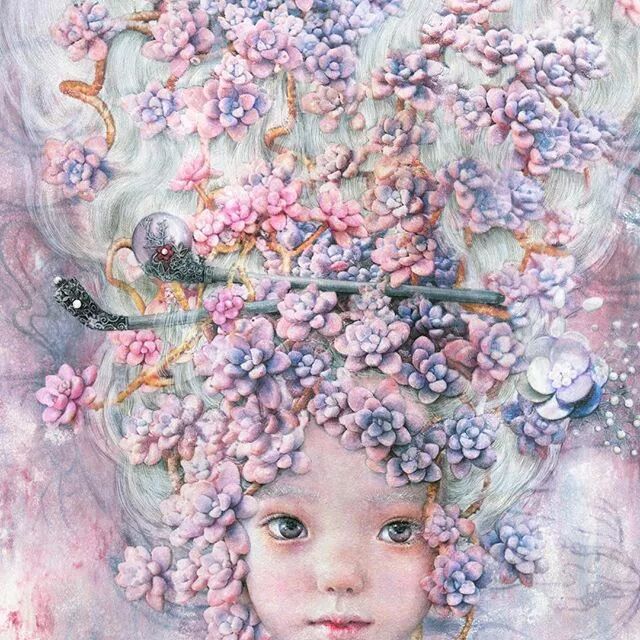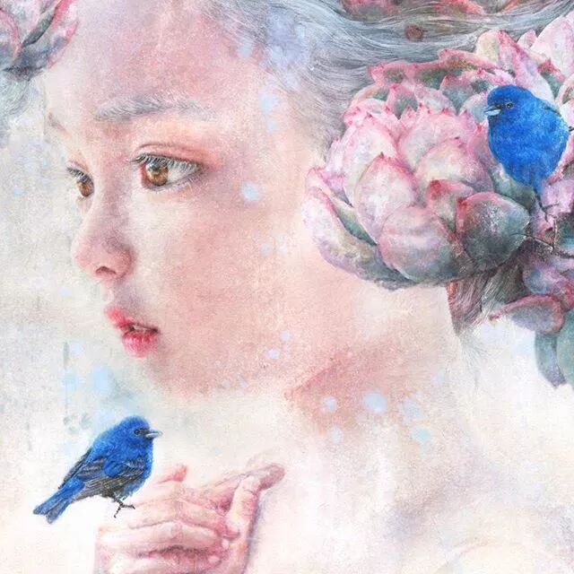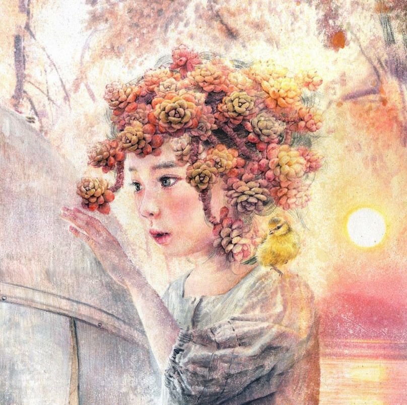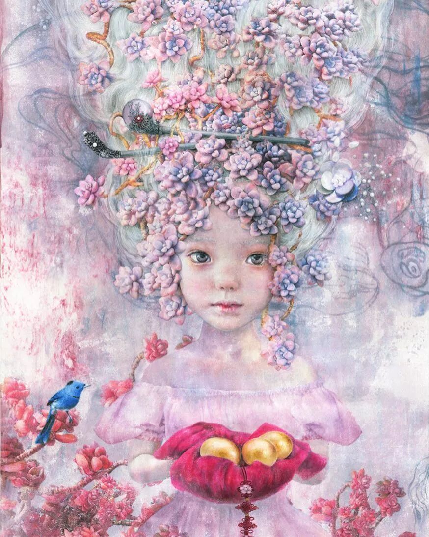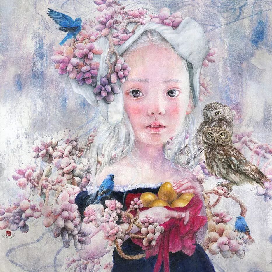 她画中的题材多为女孩子和一些动植物,