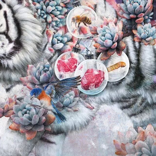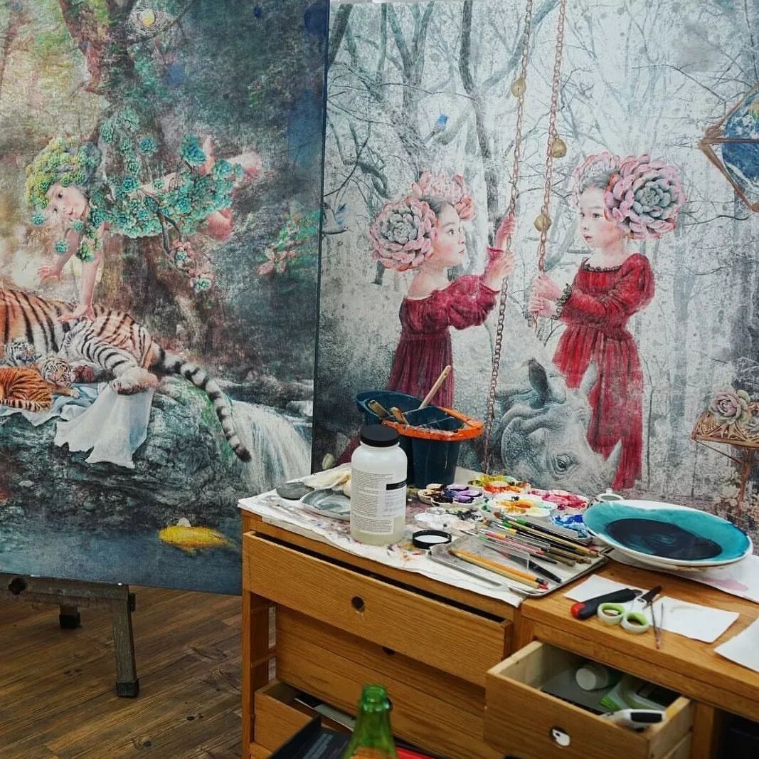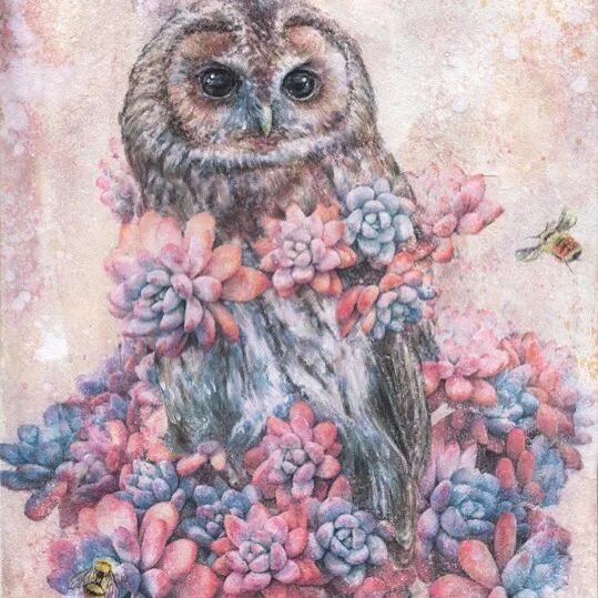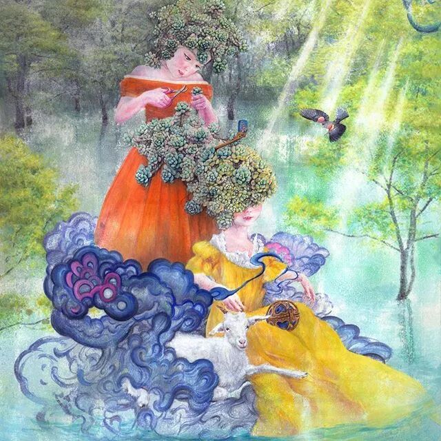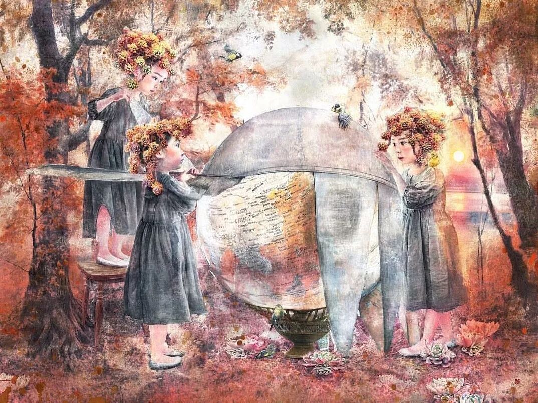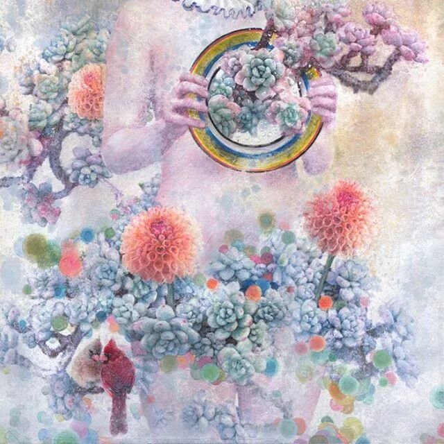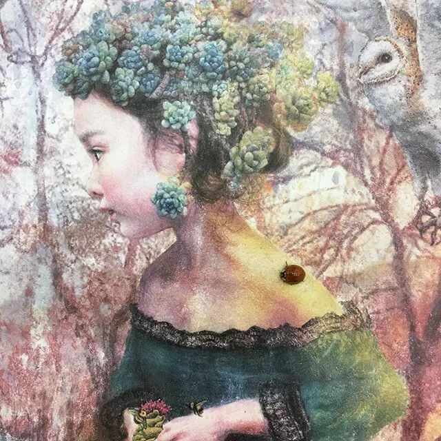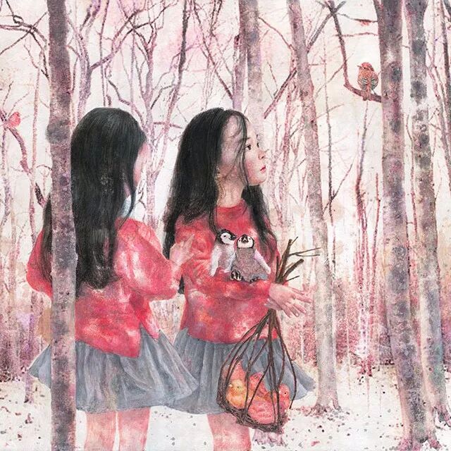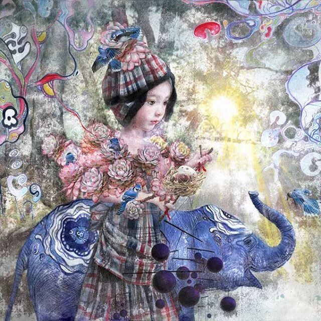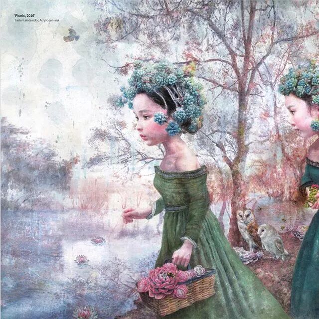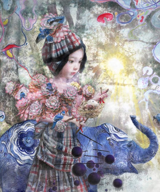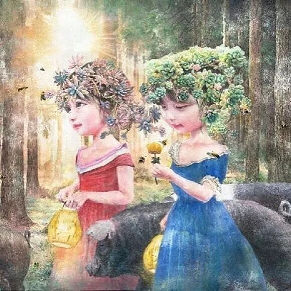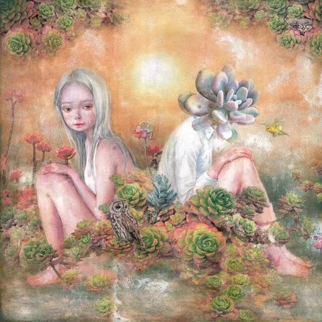 她画中的题材多为女孩子和一些动植物,